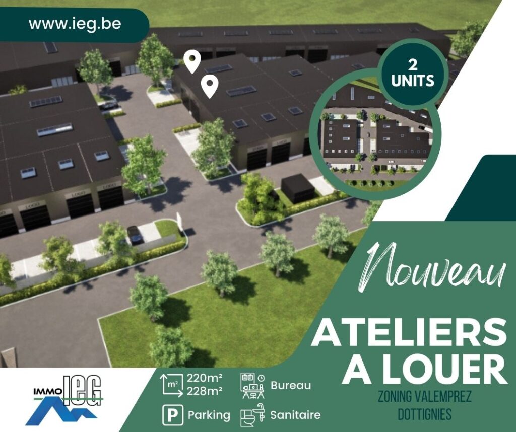 Stockage ou atelier à Dottignies, près de Mouscron. Situé tout près de plusieurs autoroutes et voies navigables, la gare TGV et l’aéroport de Lille.