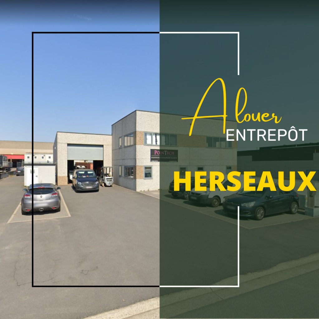 Entrepôt à Herseaux, près de Mouscron. Situé tout près de plusieurs autoroutes et voies navigables, la gare TGV et l’aéroport de Lille.